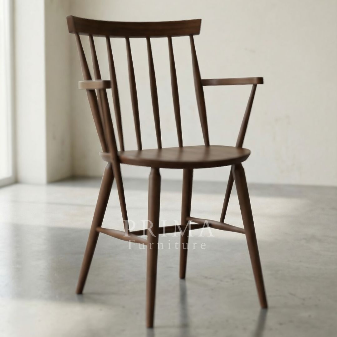 The Peter Traditional Wooden Dining Armchair combines classic craftsmanship with added comfort through integrated armrests. Constructed from solid wood, this dining armchair provides enhanced support and stability, making it ideal for extended seating. The spindle back design adds character while maintaining ergonomic comfort.